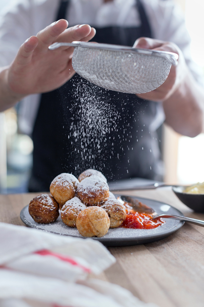 The crispy aebleskiver puffs at Beckon are made with the restaurant’s sourdough starter and served warm, either with savory toppings such as creme fraiche and caviar, or with sweet accompaniments such as powdered sugar and fruit compote. (Provided by Beckon)