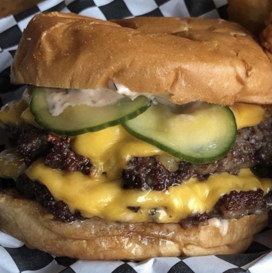 So one constant on his ever-changing menu at this walk-up food window is a satisfyingly classic take with double-beef patties, American cheese, caramelized onions, secret sauce and slices of dill pickle.